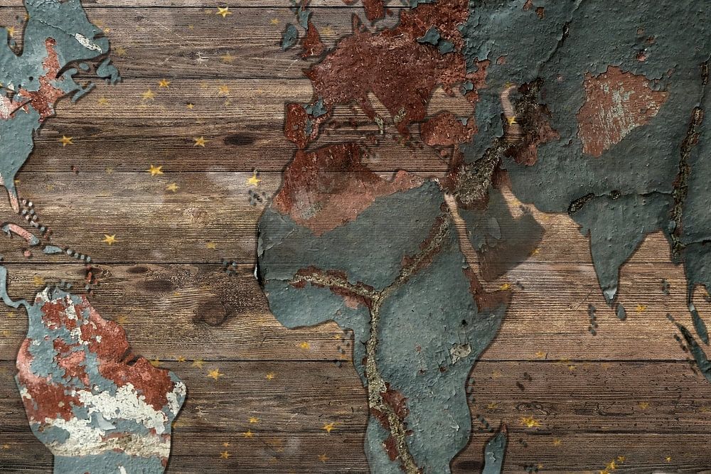 Map of the world. I made this map of the world using various techniques and layers in a photo programme.