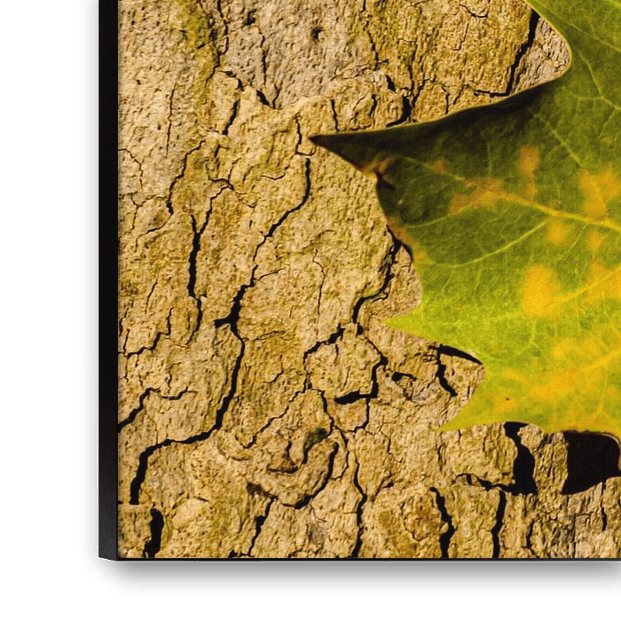 Buy this flower art Maple leaf on tree trunk nature by Dieter Walther on canvas, ArtFrame, poster and wallpaper, printed on demand in high quality.