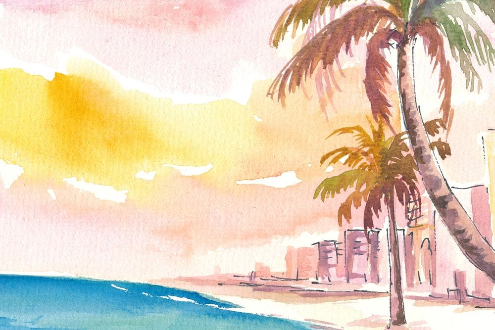 Buy this painting Marbella Costa del Sol afternoon beach scene by Markus Bleichner as a reproduction on canvas, ArtFrame, poster and wallpaper, printed on demand in high quality.