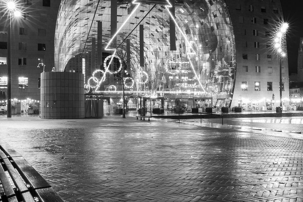 Buy this of Rotterdam Market hall at night by Prachtig Rotterdam on canvas, ArtFrame, poster and wallpaper, printed on demand in high quality.