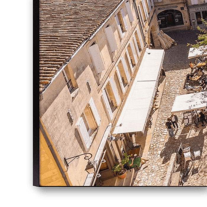 Buy this landscape artwork Marketplace in wine village Saint-Émilion in France by Werner Dieterich on canvas, ArtFrame, poster and wallpaper, printed on demand in high quality.