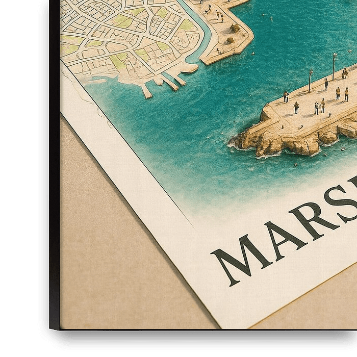 Buy this landscape artwork Marseille Old Port 3D Map – Coastal France Wall Decor by Travel Shop on canvas, ArtFrame, poster and wallpaper, printed on demand in high quality.