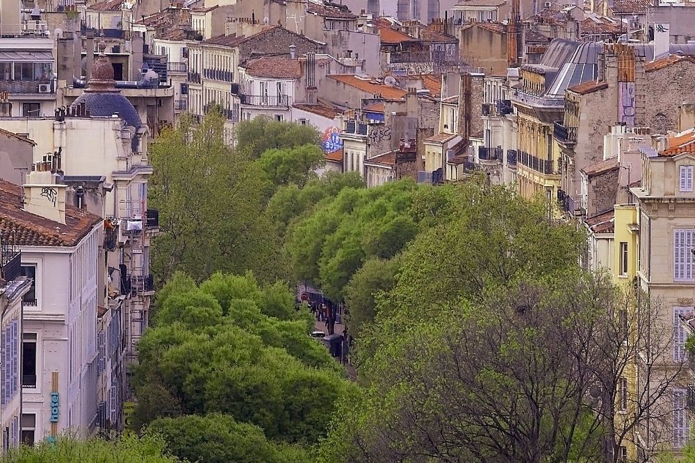 View of the townhouses in Marseille as seen from Saint Charles railway station.