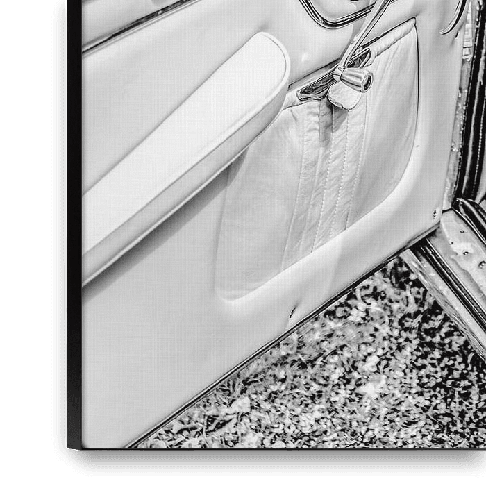 Interior on a Maserati A6G 2000 by Allemano Italian coupe GT car in black and white. The A6G 2000 Gran Turismo—commonly known as A6G/54 was offered with different body styles including this Allemano coupe of which only 21 were made.