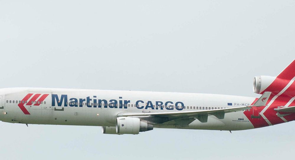 Laag voorbij vliegende MD 11F van Martinair. Deze kwam een laatste groet brengen bij de vliegbasis Leeuwarden in 2016 bij de KLu luchtmachtdagen. In juli 2016 wordt dit type toestel na 20 jaar dienst uitgefaseerd.