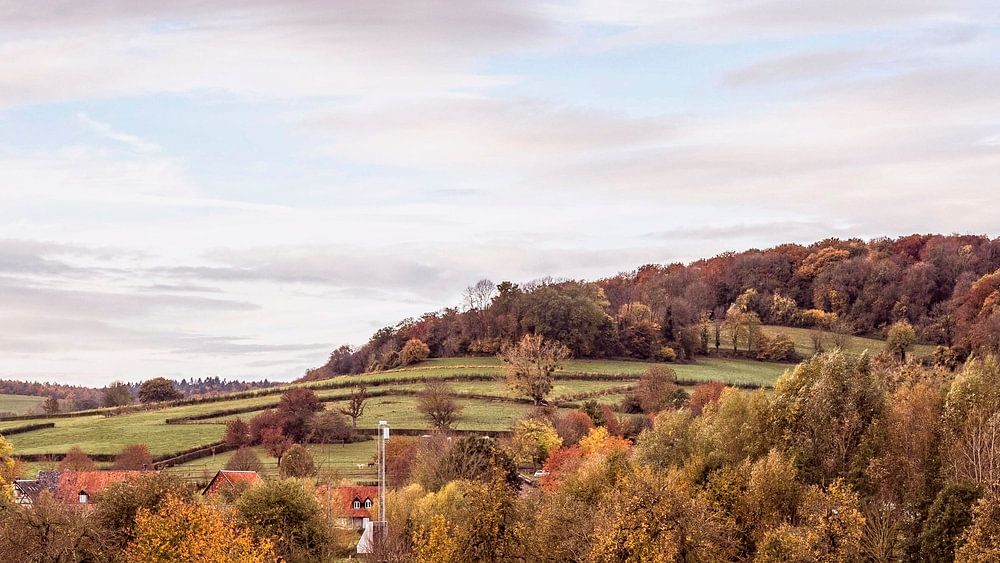 Dew-covered meadow on a cold autumn morning in Mechelen in the South Limburg Heuvelland region (Netherlands)