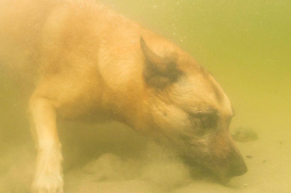 Buy the photo Mechelse herder onderwater by Annelies Cranendonk on canvas, ArtFrame, poster and wallpaper, printed on demand in high quality.