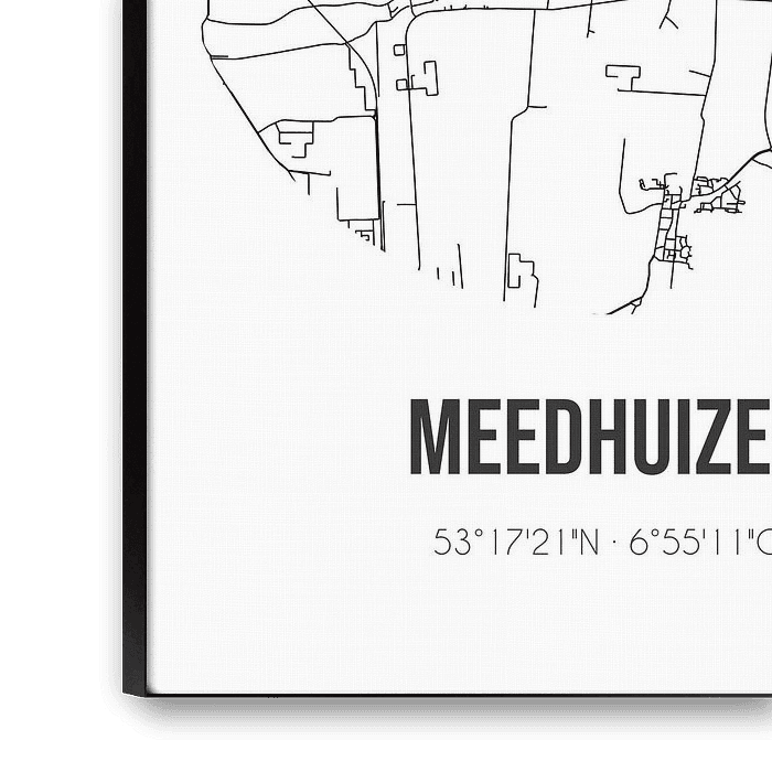 Black and white map, street map or street plan of Meedhuizen. Meedhuizen is located in the municipality of Delfzijl, province of Groningen. On the city map all public roads in Meedhuizen are included. Furthermore, the map is provided with the coordinates of the center of Meedhuizen.