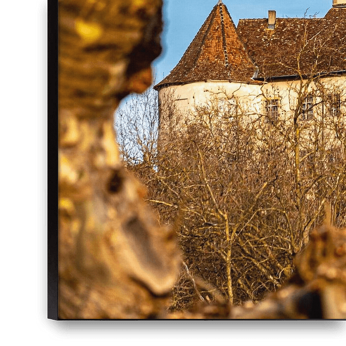 Photo of the Old Castle in Meersburg on Lake Constance, Germany, framed by tree branches