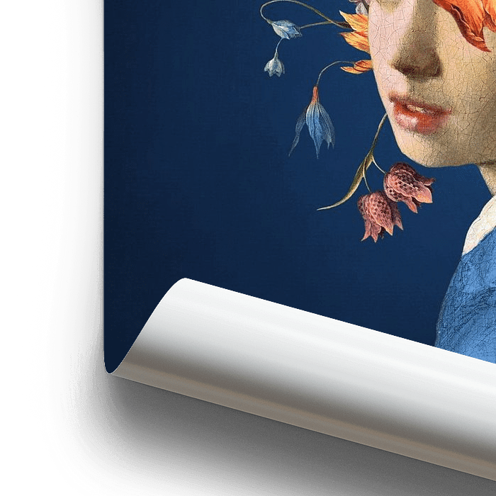 In this version, the girl is combined with flowers from still lifes by painters of the same period.