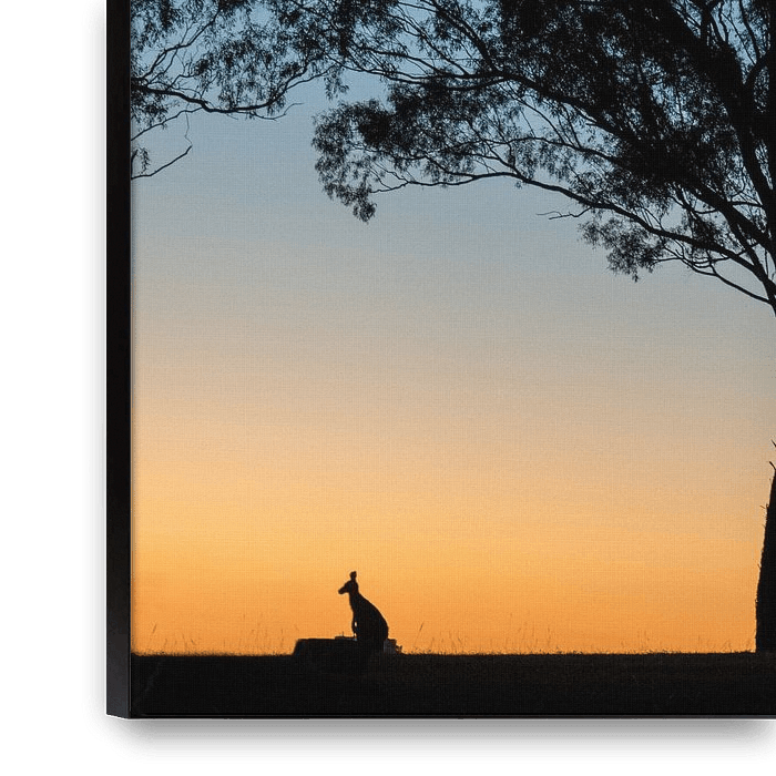 Beautiful sunset in Melbourne with a family of kangaroos.