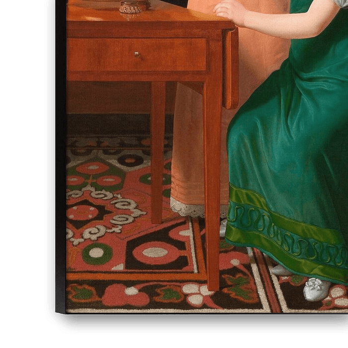 The parrot opens up the scene to symbolic readings. Due to their ability to imitate human voices parrots were often seen as symbols of good breeding, a suitable allusion for a picture of two young middle-class woman. At the same time, however, the caged bird can also be regarded as a metaphor for the two unmarried women’s sheltered situation while waiting - perhaps longing? - to move out into real life.