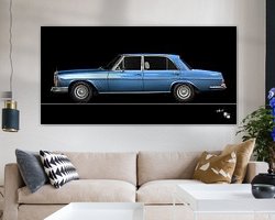 The poster shows an original Mercedes-Benz W 109 300 SEL 6.3