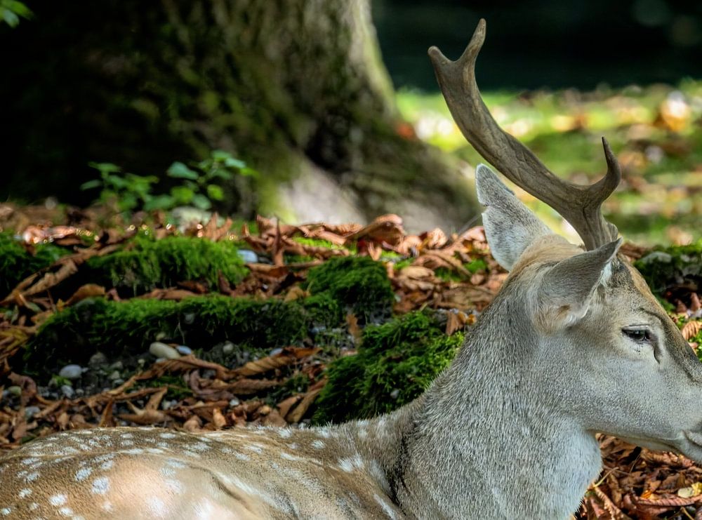 About "Mesopotamian fallow deer with antlers lying in the forest"