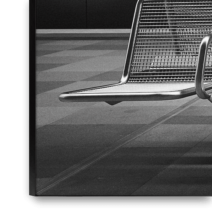 Modernly designed metal chairs at Uberseequartier metro station in Hamburg.