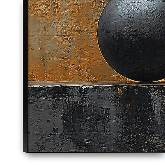 Details: abstract, still life, modern, spheres, gold, black, texture, artwork, decorative,…