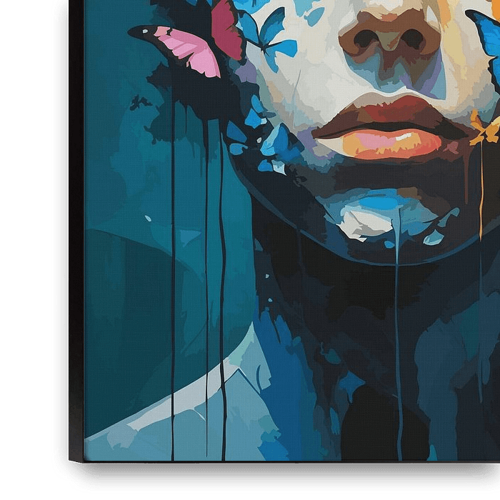 Dive into the dreamlike realm of "Metamorphosis of Serenity," where vibrant butterflies and delicate brushstrokes converge to create a striking surreal portrait. A perfect masterpiece for art lovers, this piece inspires harmony, transformation, and a connection to nature's ephemeral beauty.