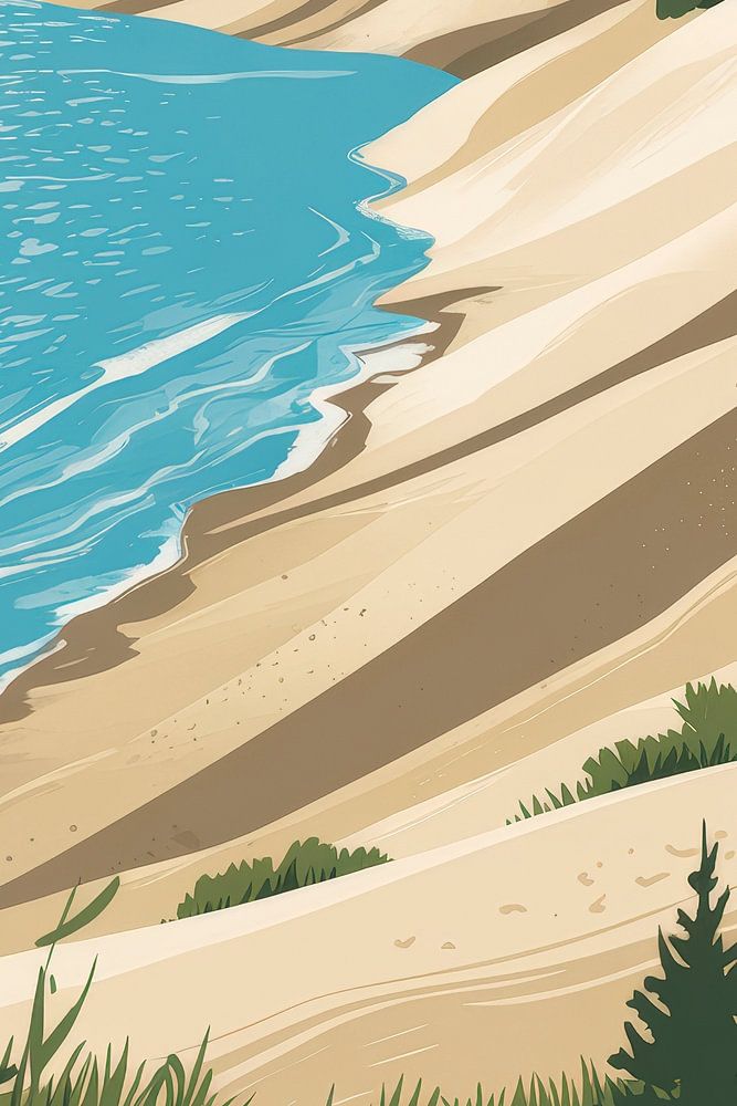 Gentle waves wash over the golden dunes as the sun rises gently on the horizon. The deep green fir trees lend the picture an earthy freshness, perfect for revitalising the room. This work of art brings a touch of nature and freedom into the living room and creates a relaxing atmosphere that invites you to dream.