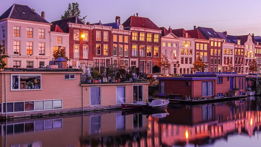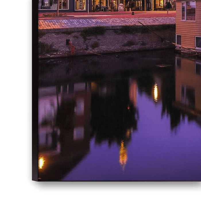 Middelburg in Zeeland on a beautiful early morning in August. The beautiful lilac tones and the soft light make it a feast for the eyes. The Rouaansekaai, where this picture was taken, is a street in Middelburg in the province of Zeeland. Between house numbers 23 and 25 there is an entrance gate to the Kuiperspoort. The quay walls at the Rouaansekaai date from the 16th century, and were partly renewed in 1866-1867.