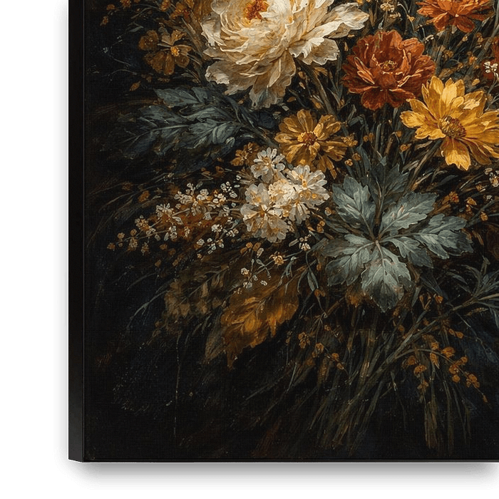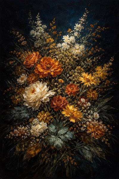 Stepping into a moonlit garden where the air is thick with the scent of damp earth and ancient secrets, this piece, "Midnight Wildflower Bloom," captures a moment of defiant beauty. Inspired by the quiet strength found in untamed nature, this maximalist composition abandons the traditional vase, allowing a riot of wildflowers to explode…