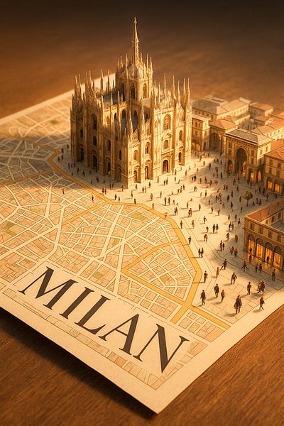 Experience the gothic grandeur of Lombardy with this stunning Milan (Milano) 3D Miniature Map. The artwork features the breathtaking Duomo di Milano, with its hundreds of spires and statues reaching toward the sky, rendered in incredible detail. To the right, the grand entrance of the Galleria Vittorio Emanuele II adds a touch of…