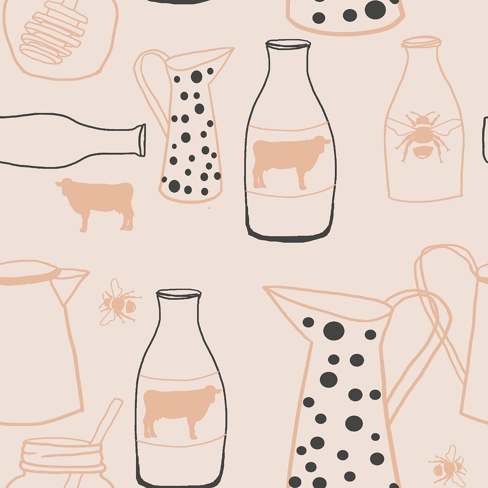 Buy this cow art Milk & Honey Pattern by Gemma Bardot on canvas, ArtFrame, poster and wallpaper, printed on demand in high quality.