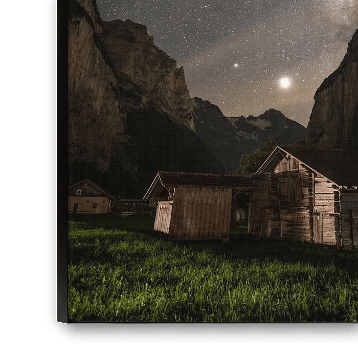 Buy the photo Milky way Lauterbrunnen by Jeroen Linnenkamp on canvas, ArtFrame, poster and wallpaper, printed on demand in high quality.