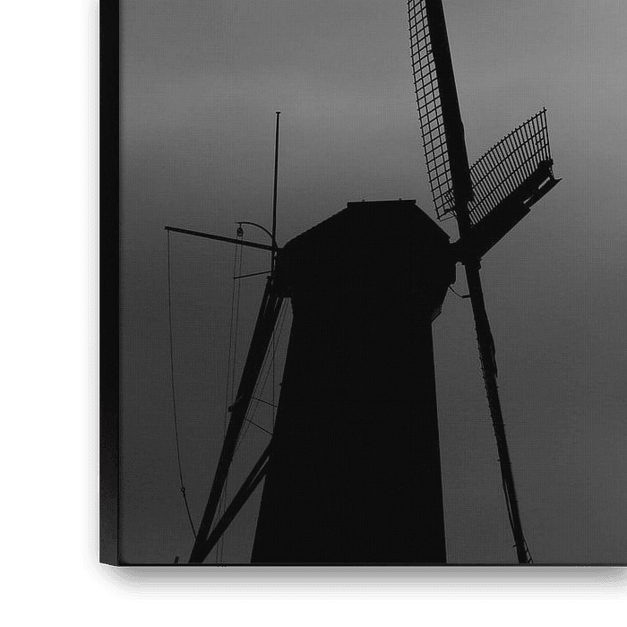 A beautiful black-and-white photo with an image of a windmill on it. Because the sun was just able to shine through the threatening clouds, giving me a counterbalance, it created a nice silhouette of the mill.