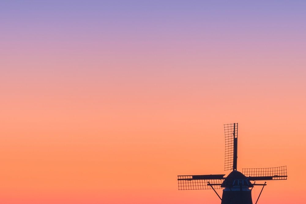 On a clear and freezing cold morning in February I was all alone at windmill 't Zwaantje in Nijemirdum. Half an hour before sunrise the sky turned beautiful orange and purple. Half an hour later I enjoyed the first sunbeams falling over the dike onto the mill.