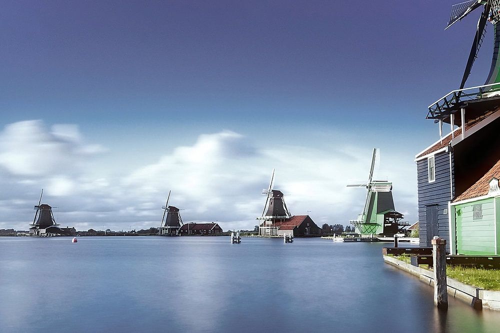 Mills Zaanse Schans with tour boat (John Leeninga).