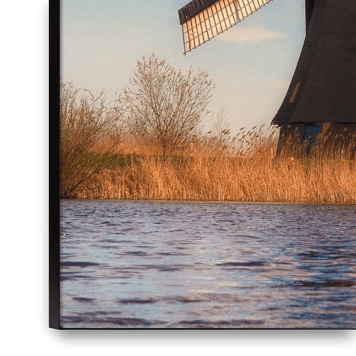 Buy this landscape artwork Mills of Kinderdijk by Carla Schenk on canvas, ArtFrame, poster and wallpaper, printed on demand in high quality.