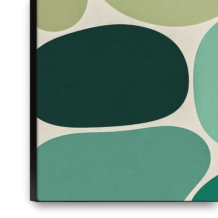 Bring the calming essence of nature indoors with this stunning organic abstract art print. Featuring a curated collection of soft, pebble-like shapes in a sophisticated palette of sage green, deep forest, and muted olive, this piece perfectly captures the "Biophilic" design trend.