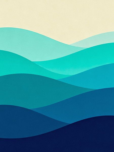 Minimalist Abstract Teal Ocean - Serene Blue Waves by Minggu Galeri