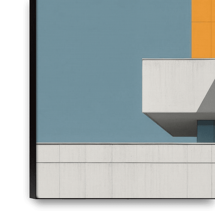 Sleek concrete façade combined with a bright yellow door and a subtly shaped tree. The balance between nature and geometry makes this image both powerful and tranquil. Perfect as modern wall decoration for a sleek interior with a warm accent.