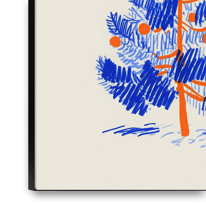 About ‘Minimalist Christmas tree illustration in blue and orange’ by But First Framing