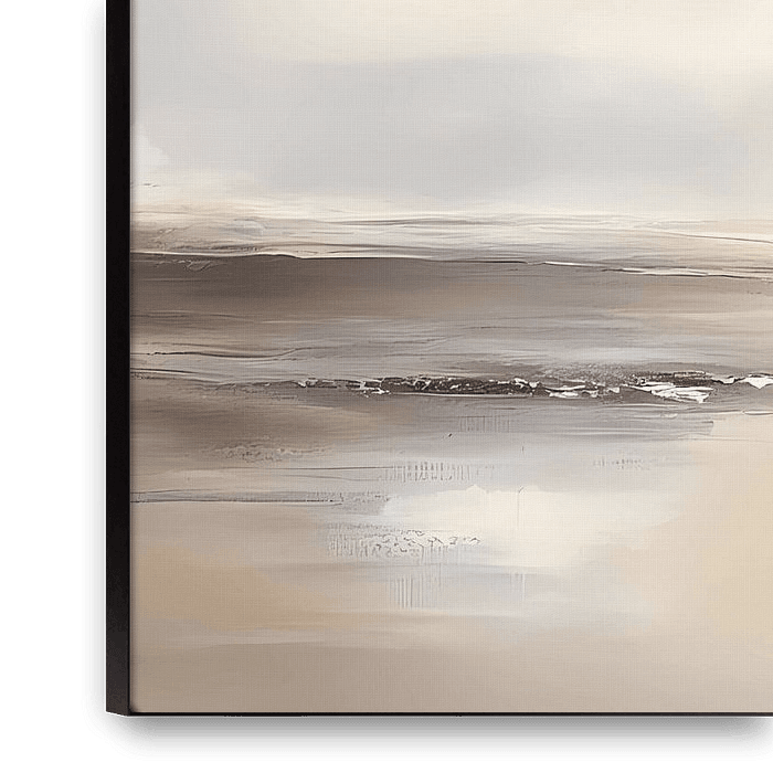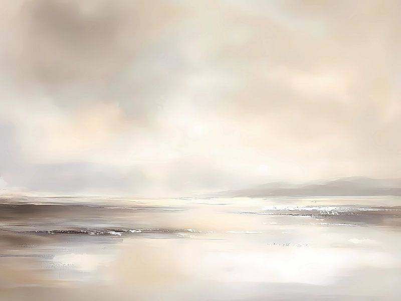 A calm and airy seascape in soft neutral tones, evoking peace and quiet reflection.