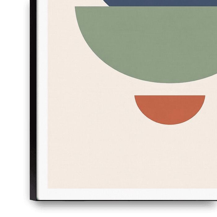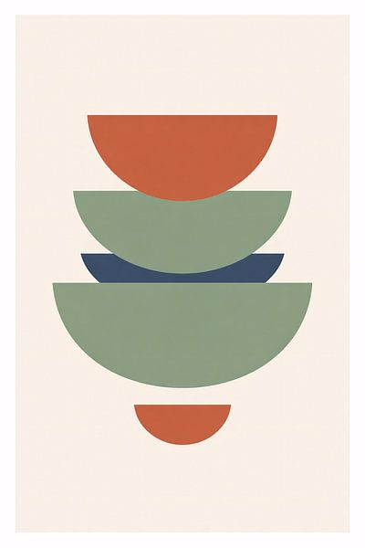 A calm and balanced abstract composition featuring stacked semi circles in earthy terracotta, sage green, and deep blue tones. This minimalist geometric artwork brings harmony, warmth, and modern elegance to Scandinavian and contemporary interiors.