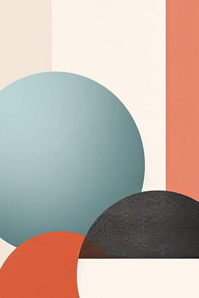 The painting is an example of contemporary art with a minimalist design. On a white background, pastel-coloured geometric shapes are precisely arranged. The clean aesthetic emphasises attention to detail and creates a calm atmosphere. The image consists of 2D graphic designs and simple compositions that achieve a harmonious balance between the elements. Overall, the work embodies a simple, contemporary aesthetic that invites the viewer to reflect and discover.