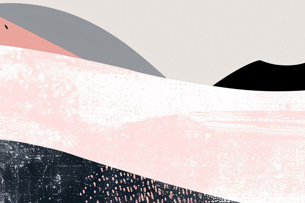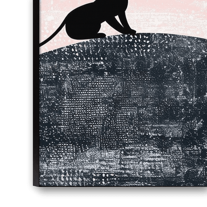 This beautiful minimalist artwork shows a silhouette of a cat sitting peacefully in an abstract landscape. The combination of soft pink tones, grey tones and monochrome elements creates a serene and calming atmosphere, perfect for any modern space. The painting captures the essence of simplicity and elegance, with flowing lines and a…
