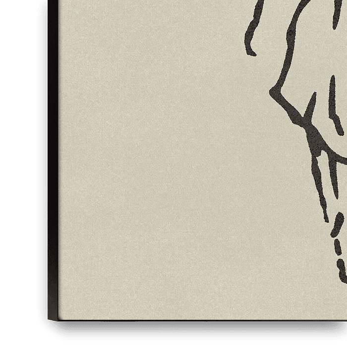 Minimalist semi-abstract line drawing - a gesture artwork depicting the main lines of this pose in a quick sketch. Executed with a soft sand-coloured texture as background.