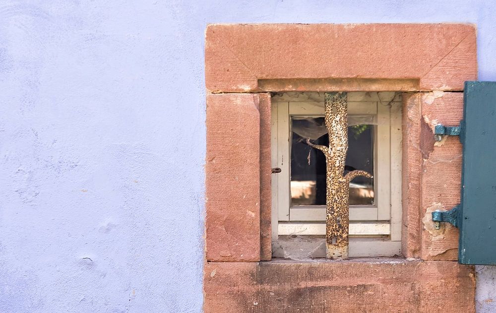 This year, I came across this beautiful scene in Alsace. An old wall in a very special purple-blue colour with a small terracotta-coloured window with a small shutter. Surely this minimalist image is something you want to have on your wall?
