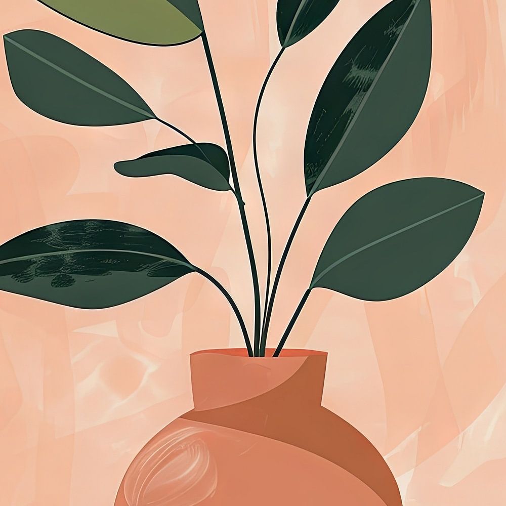 This fascinating work of art combines simple elegance and natural aesthetics by depicting a stylised plant in a minimalist style. The clean lines and subtle colour tones emphasise the organic shapes of the leaves, which are presented in a modern terracotta pot. Ideal for lovers of minimalist design and plant enthusiasts, this image will bring a calming and stylish atmosphere to any home or office. Perfectly suited to the minimalist art category, it emphasises the beauty of nature in a contemporary interpretation.