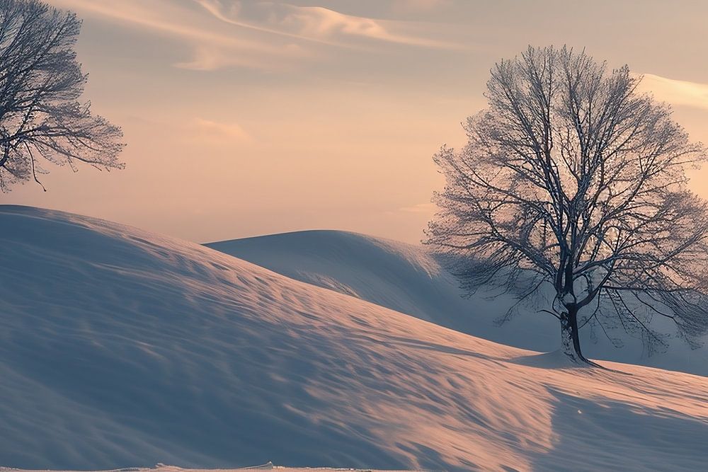 Buy this landscape artwork Minimalist winter landscape at dawn by fernlichtsicht on canvas, ArtFrame, poster and wallpaper, printed on demand in high quality.
