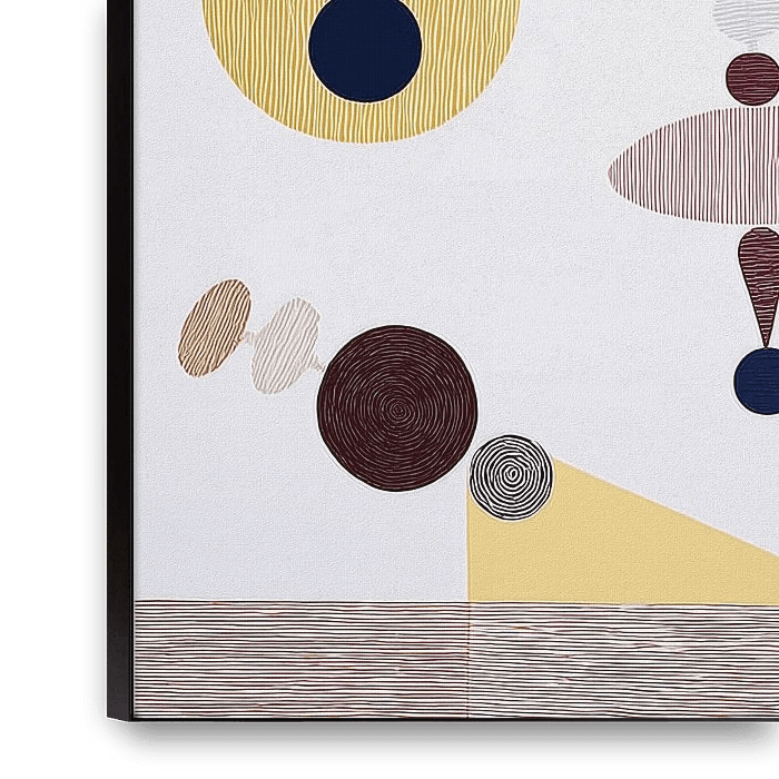 Miró Meets Kandinsky is an ode to these two founding fathers of abstract art. In this series, Miró's playful, organic imagery and symbolic forms fuse with Kandinsky's sense of rhythm, structure and composition to create a contemporary interpretation. This artwork consists of loose, flowing shapes and bright geometric elements moving on…