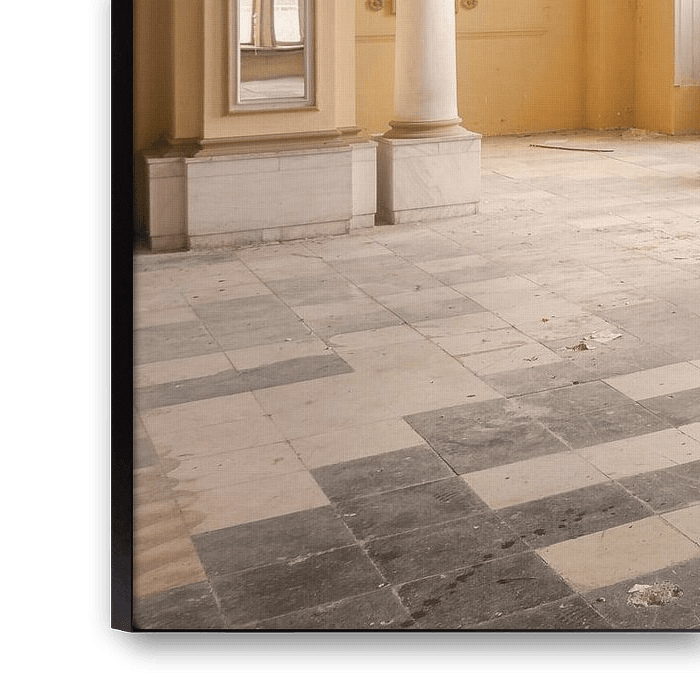 This is a photo of a room in the abandoned casino of Constanta in Romania. The architecture of this place is incredible and the history very interesting. It was once host to a royal wedding.