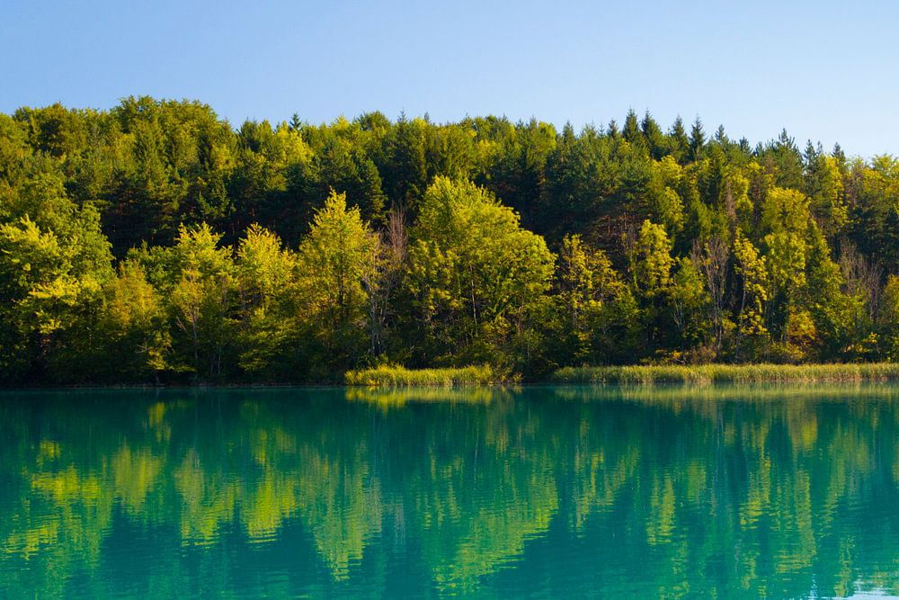 Tijdens de boottocht naar de lagere meren bij Plitvice. Het water bewoog haast niet, alleen door het bootje achter ons.