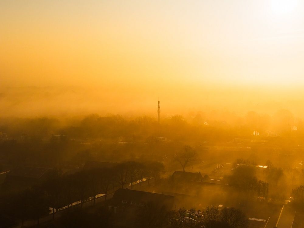 A misty morning at sunrise over Rijnenburg, near IJsselstein, in the province of Utrecht.