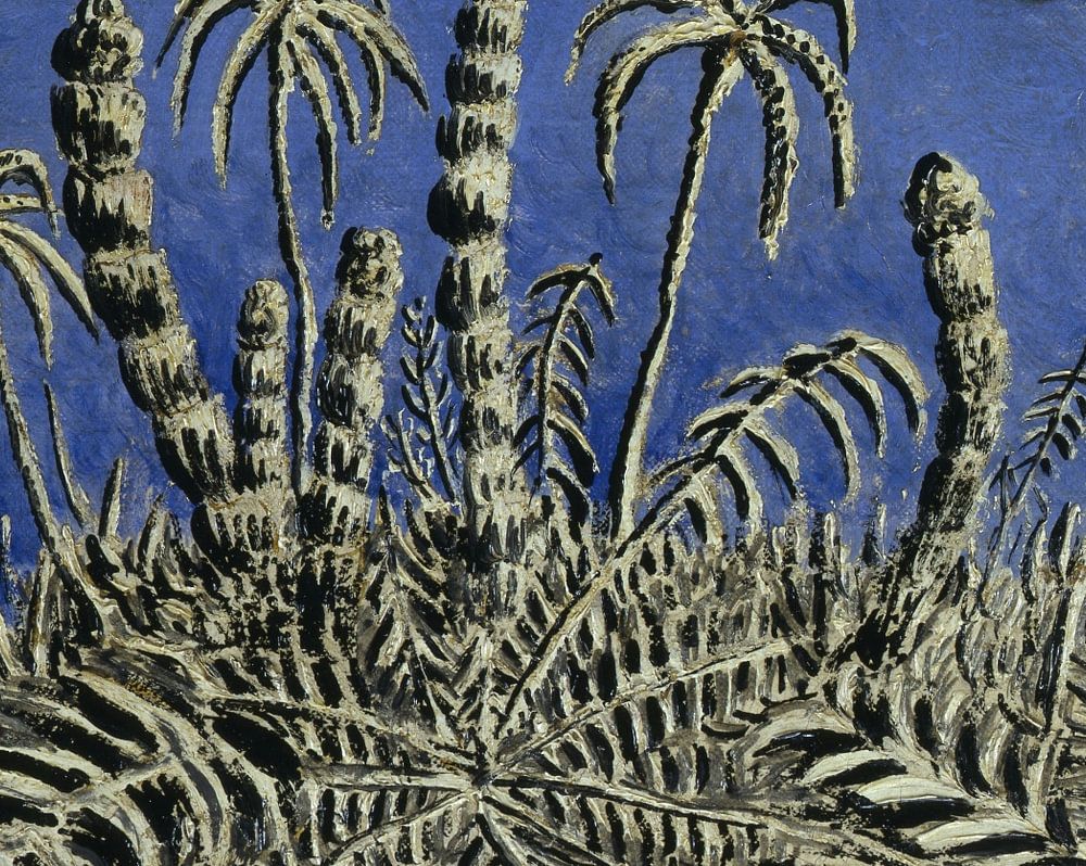 In "Portable Island", where the portability mentioned in the title now refers to a new concept of landscape, shifted - also in scale - to the size of a board game. At the same time, nature also changes: it is no longer a typical European forest, but lush tropical plants and palms. These are systematically rendered in dull shades of grey - inspired by Eduard Riou's engravings in the scientific writer Louis Figuier's book The World Before the Deluge, published in Paris in 1863 - contrasting with the bluish background of the lazily choppy sea and the clear sky, over which two enigmatic geometric shadows glide, like disturbing eagles. The artist offers us his reflection on art, i.e. on that which is simultaneously its privilege and limit: the ability to grasp only a part of reality at a time, the overall and ultimate meaning of which nevertheless remains beyond the artist's reach, at least as far as this miniature island is removed from the real landscape in the background. Alberto Savinio (Athens, 25 August 1891 - Florence, 5 May 1952) was an Italian artist. After studying at the Athens Conservatory, Alberto Savinio left for Munich to continue his music studies. In 1910, Alberto Savinio settled in Paris. After 1930, he was active as a painter and writer.