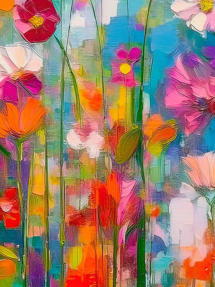 Buy this abstract artwork Modern Abstract Colourful Summer Field Flowers by Studio Pieternel on canvas, ArtFrame, poster and wallpaper, printed on demand in high quality.