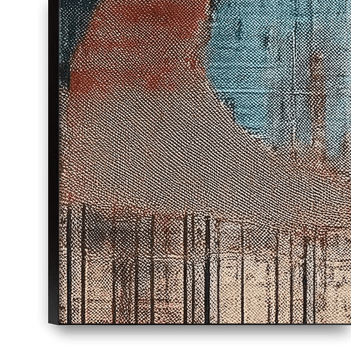 Buy this abstract artwork Modern Abstract Design. Structures in Petrol blue and warm Terracotta by Studio Pieternel on canvas, ArtFrame, poster and wallpaper, printed on demand in high quality.